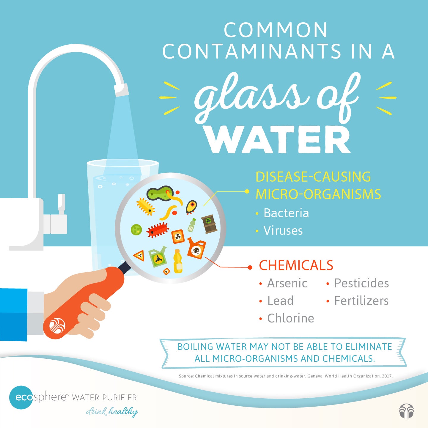 While getting the appropriate amount of water is essential, the quality of your water is also important. Although a glass of water may appear to be clean and safe, the honest truth is that invisible bacteria and viruses may already be residing within. Our water may also be contaminated with harmful chemicals caused by industrial and agriculture pollution as well as aged water supply infrastructure.