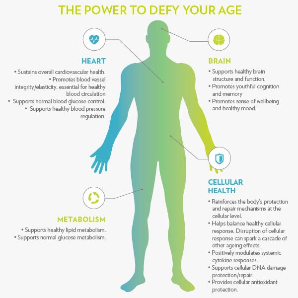 By targeting the gene expression controlling these ageing defense mechanisms, ageLOC Y-Span provides health benefits for your entire body.