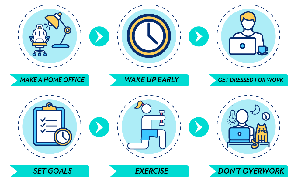 5. Exercise: Working from home provides you with the flexibility to schedule activities during your workday that you wouldn’t normally be able to do in a traditional office. Exercise gives you a boost of energy which is incredibly important for productivity and motivation.