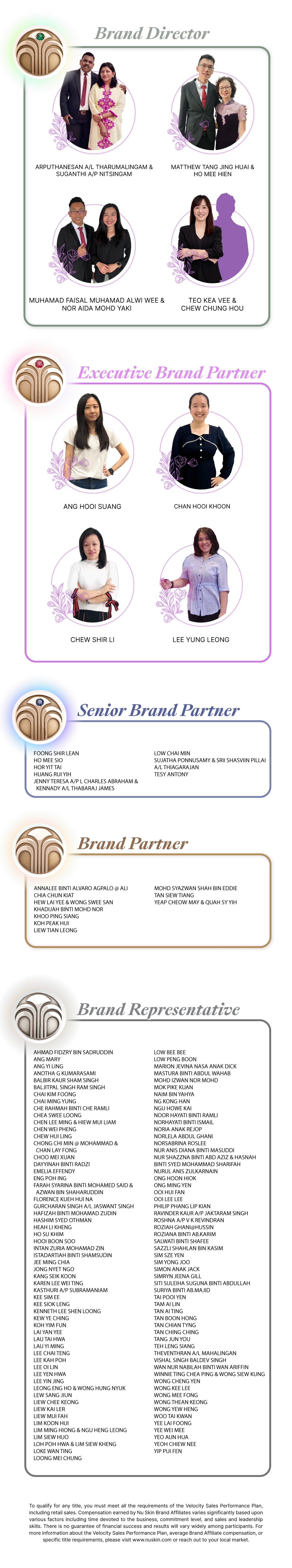Generating sales compensation as a Brand Affiliate requires considerable time, effort and dedication. Success will also depend upon your skills, talents and leadership abilities. There is no guarantee of financial success and results will vary widely among participants. For more information regarding the Velocity by Nu SkinĀ® Sales Performance Plan, please contact the Nu Skin office in your home market or go to www.nuskin.com.